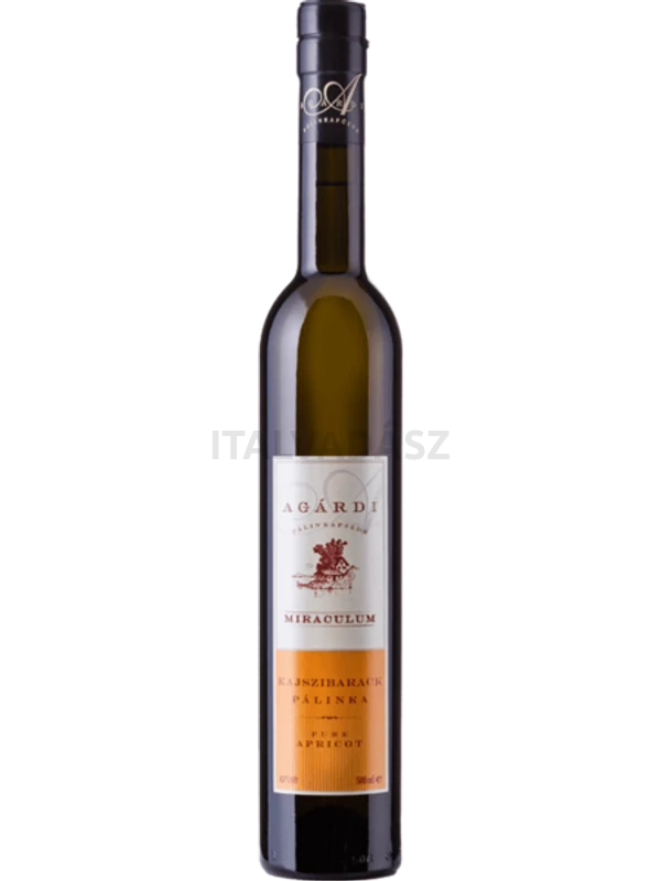 Az Agárdi Miraculum kajszibarack pálinka édes, gyümölcsös ízvilágot kínál, 0,5 literes palackban.