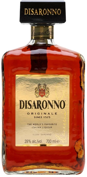 Az olasz Disaronno amaretto édes, mandulás ízvilágot kínál, 0,7 literes palackban.