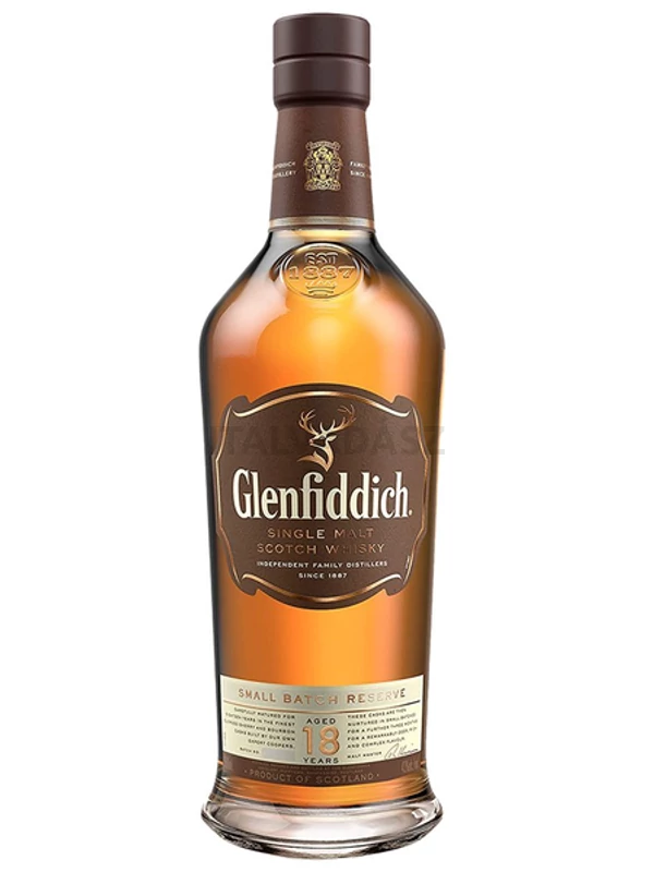 A Glenfiddich 18 éves whisky gazdag, komplex ízvilágot kínál, hosszú érlelésének köszönhetően. 0,7 literes palackban.