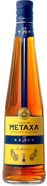 A Metaxa 5* gazdag, fűszeres és gyümölcsös jegyekkel hódít. 0,5 literes palackban, 38%-os alkoholtartalommal.