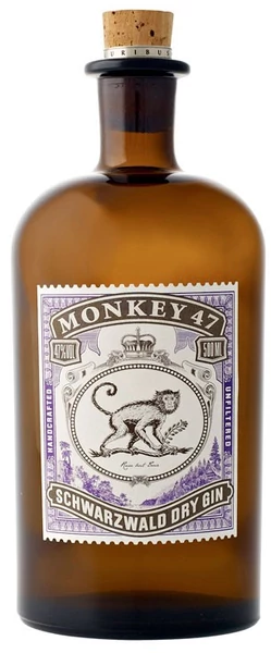 A Monkey 47 gin 47 féle gyógynövényből készül, komplex, gazdag ízvilággal. 0,5 literes palackban, 47%-os alkoholtartalommal.