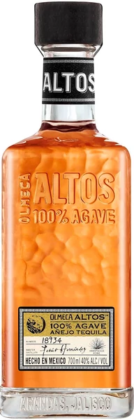Az Olmeca Altos Anejo tölgyfahordóban érlelt tequila, amely gazdag, fűszeres és vaníliás jegyekkel hódít. 0,7 literes palackban, 40%-os alkoholtartalommal.