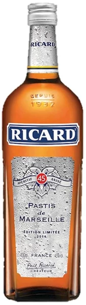 A Ricard Pastis klasszikus francia ánizs alapú aperitif, 0,7 literes palackban, 45%-os alkoholtartalommal.