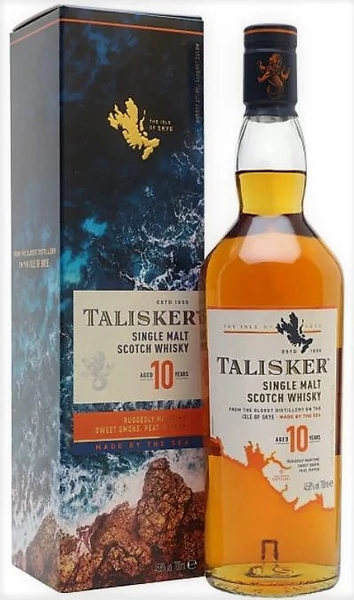A Talisker 10 éves whisky füstös, tengerparti karakterrel hódít. 0,7 literes kiszerelésben, 45,8%-os alkoholtartalommal, díszdobozban.
