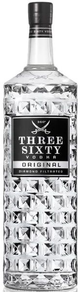 A Three Sixty vodka tiszta, lágy ízvilágot kínál, gyémántszűrési technológiával készül. 0,7 literes palackban.