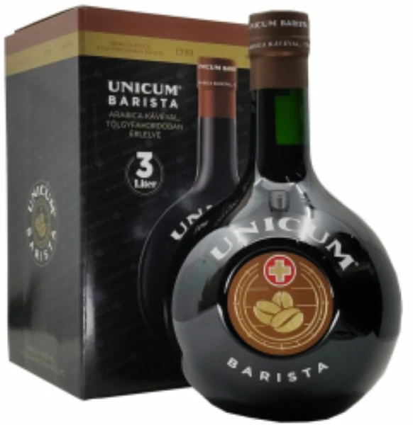A Zwack Unicum Barista kávés változata 3 literes díszdobozos formátumban érkezik. Gazdag gyógynövényes alap és pörkölt kávéaromák jellemzik.