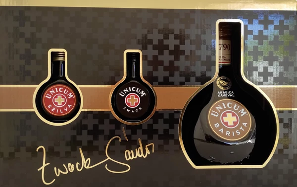 A Zwack Unicum Barista kávés ízvilágát kínálja 0,7 literes kiszerelésben, Unicum és Szilva minipalackkal, díszdobozban.